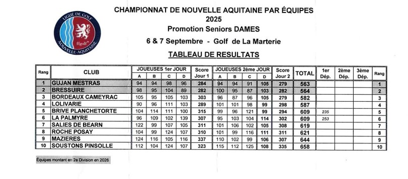 Résutats des équipes séniors Dames et Messieurs
